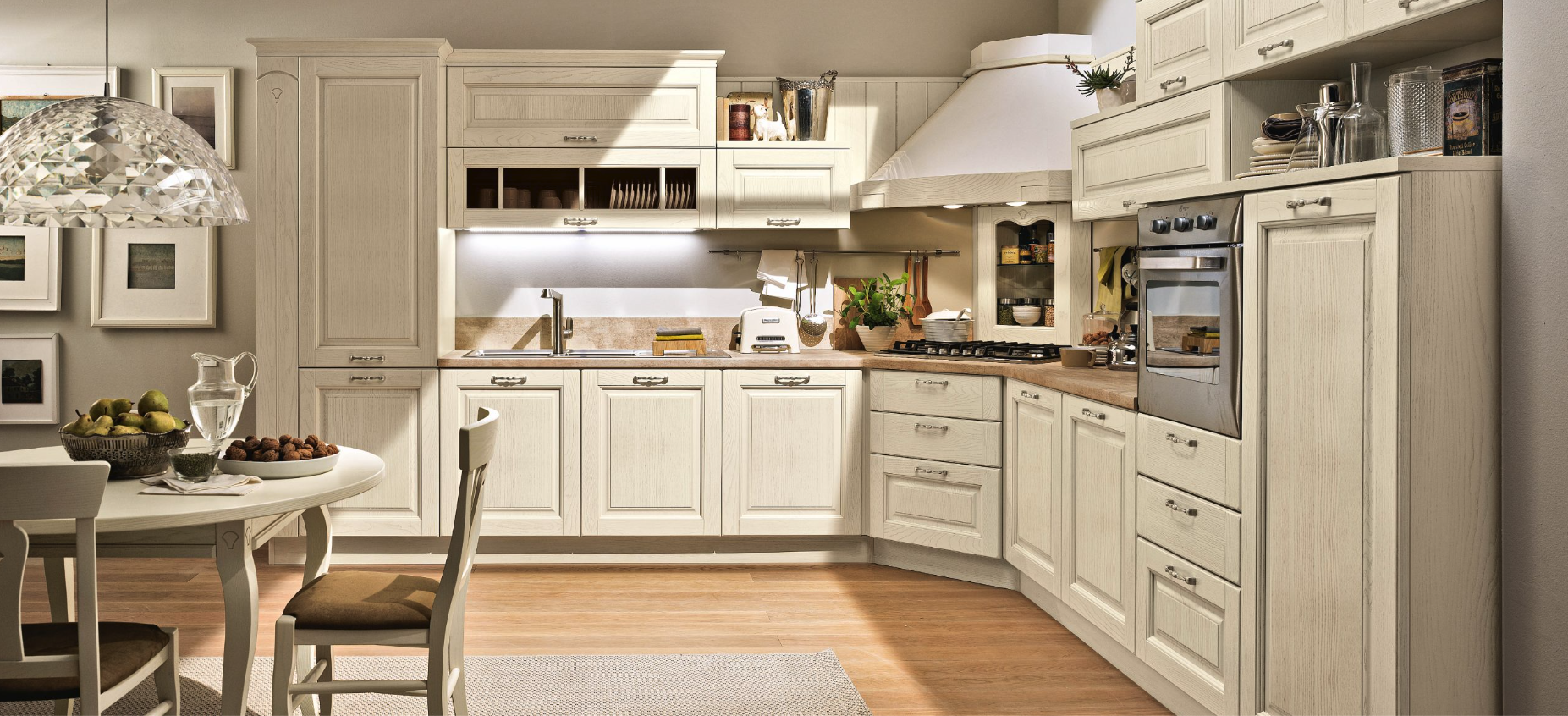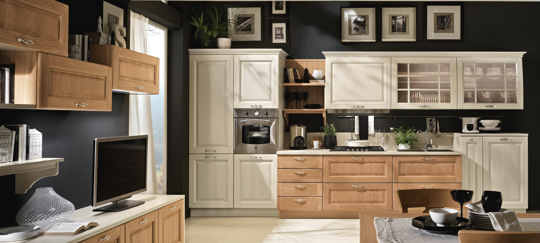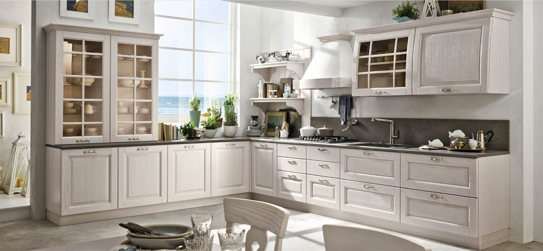 Il richiamo al passato esalta le proposte di arredo, che possono contare su soluzioni altamente ergonomiche e funzionali. Ante vasistas, cassetti, cestoni e ampi piani di lavoro, rendono questo modello capace di soddisfare qualsiasi esigenza.