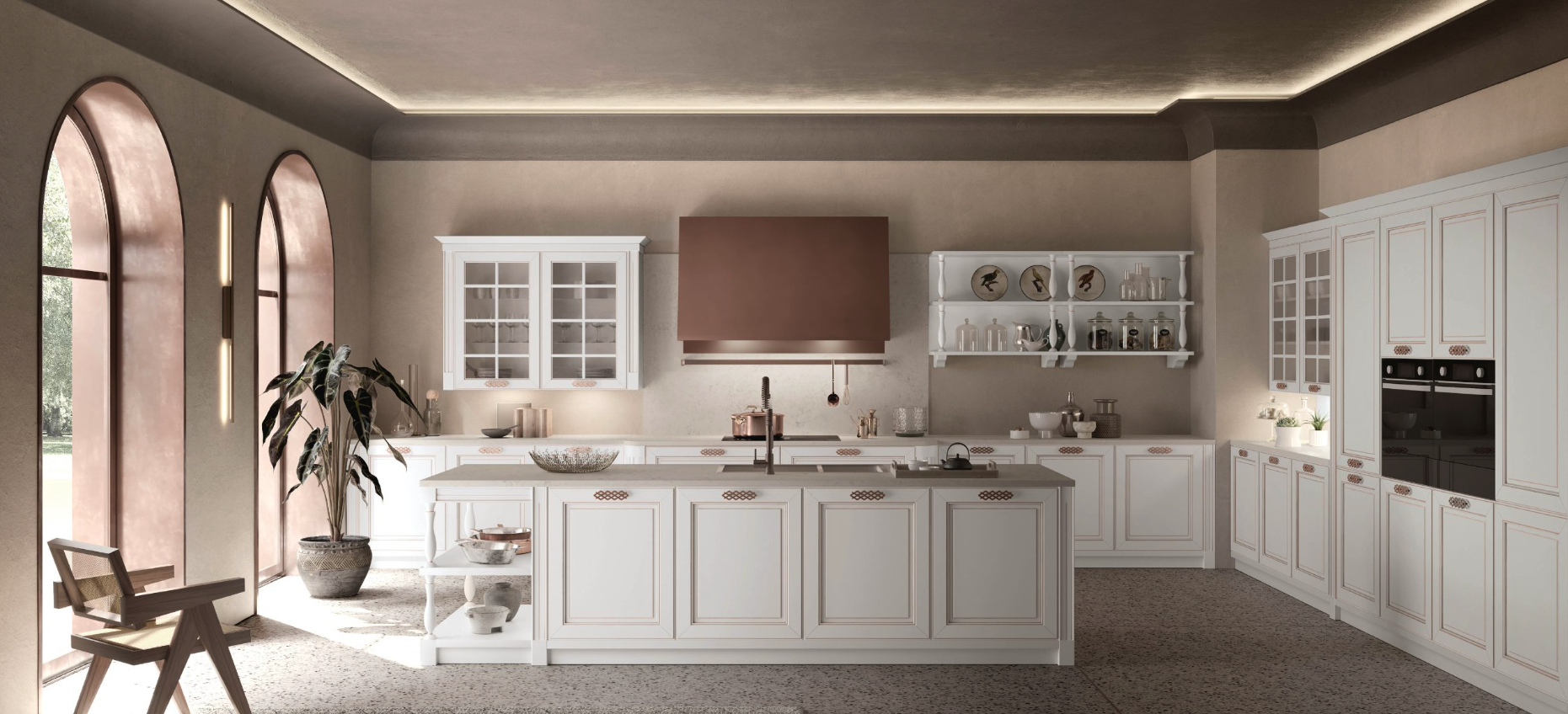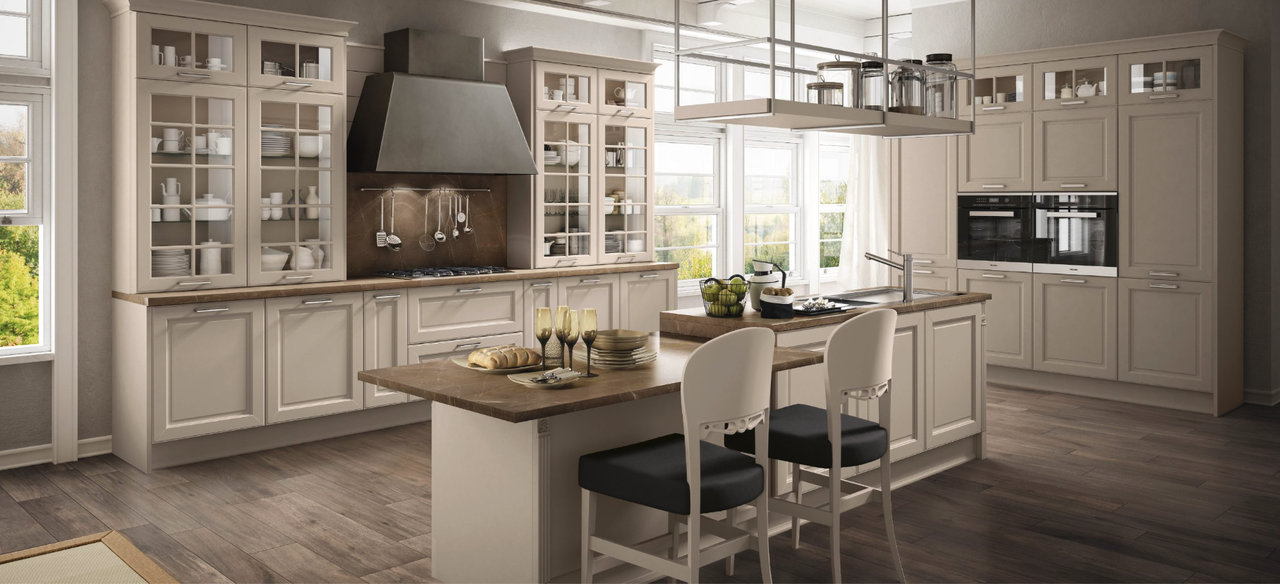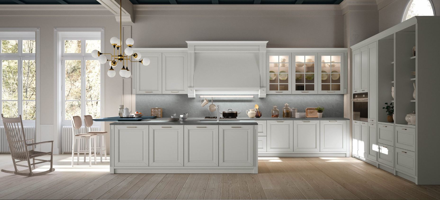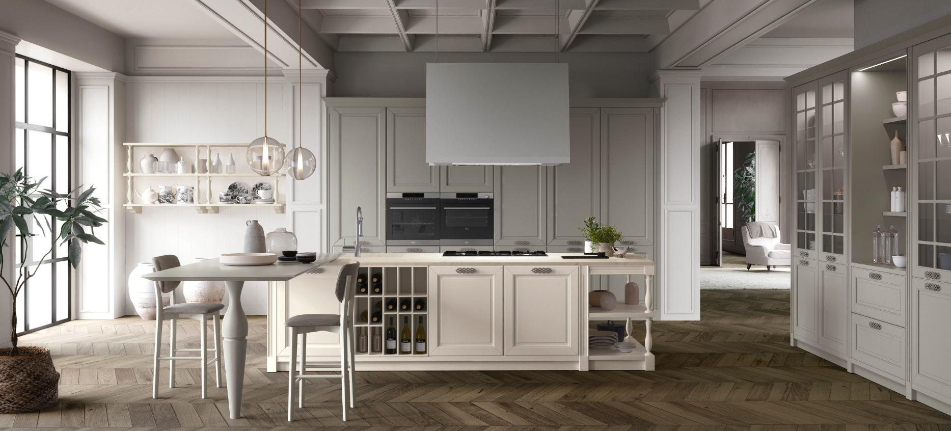 Due mood d’ispirazione, International e Classic, che spaziano da cucine dall’orientamento contemporaneo ad ambienti che conservano intatta l’anima tipica dello stile classico dove, in alcuni casi, il decoro diventa protagonista della scena.