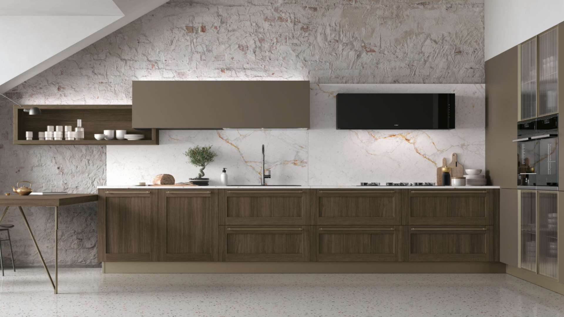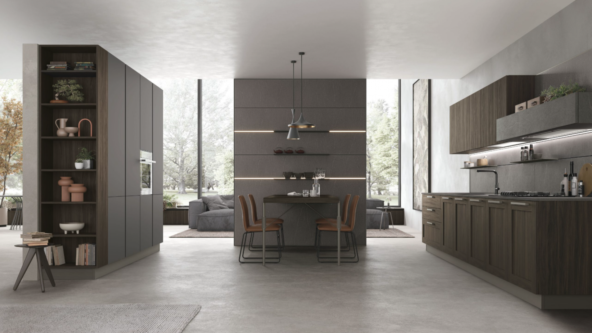 Caratteristica distintiva del modello è l’anta a telaio con bugna, che nel modello City assume uno stile creativo e non convenzionale. Un’estetica solida e decisa, una cucina capace di offrire sensazioni tattili e visive grazie alle sue finiture materiche.